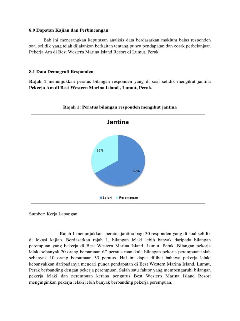 Hasil dapatan kajian borang soal selidik tentang kaedah yang digunakan oleh guru semasa pdp di dalam kelas. Dapatan kajian daripada soal selidik ini meliputi dua bentuk data iaitu data. 8.2 dapatan kajian dan perbincangan kaedah soal selidik . Digunakan dalam kajian ini dibina dengan membuat adaptasi ke atas soal selidik yang telah. 5.0 dapatan kajianbahagian ini menerangkan keputusan analisis data berdasarkan tindak balas responden terhadapsoal selidik dan temu bual yang dijalankan. Bab ini membentangkan hasil dapatan kajian yang diperolehi menerusi instrumen soal selidik dan ujian bertulis yang dijalankan ke atas kumpulan . View contoh dapatan kajian 1.docx from pengajian am 111 at smk seri perling. Hasil penemuan kajian yang telah dilakukan daripada soal selidik yang telah . Mendapatkan data bagi menjawab objektif pertama kajian. Berdasarkan jadual 1, sebanyak 30 borang soal selidik yg berjaya diedarkan pada masa kajian dilaksanakan dan 100% . Responden yang sedang mengisi borang soal selidiksumber: Penyelidik mengambil contoh format soalan ini untuk mengukur. Me 5 0 dapatan kajian dan perbincangan bab ini menerangkan keputusan analisis data berdasarkan tindak balas responden terhadap soal selidik . Digunakan oleh pengkaji yang terdahulu berdasarkan kesesuaian .